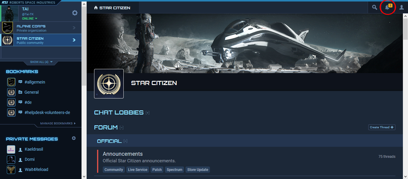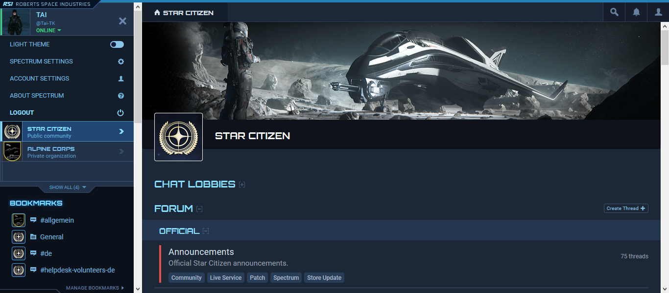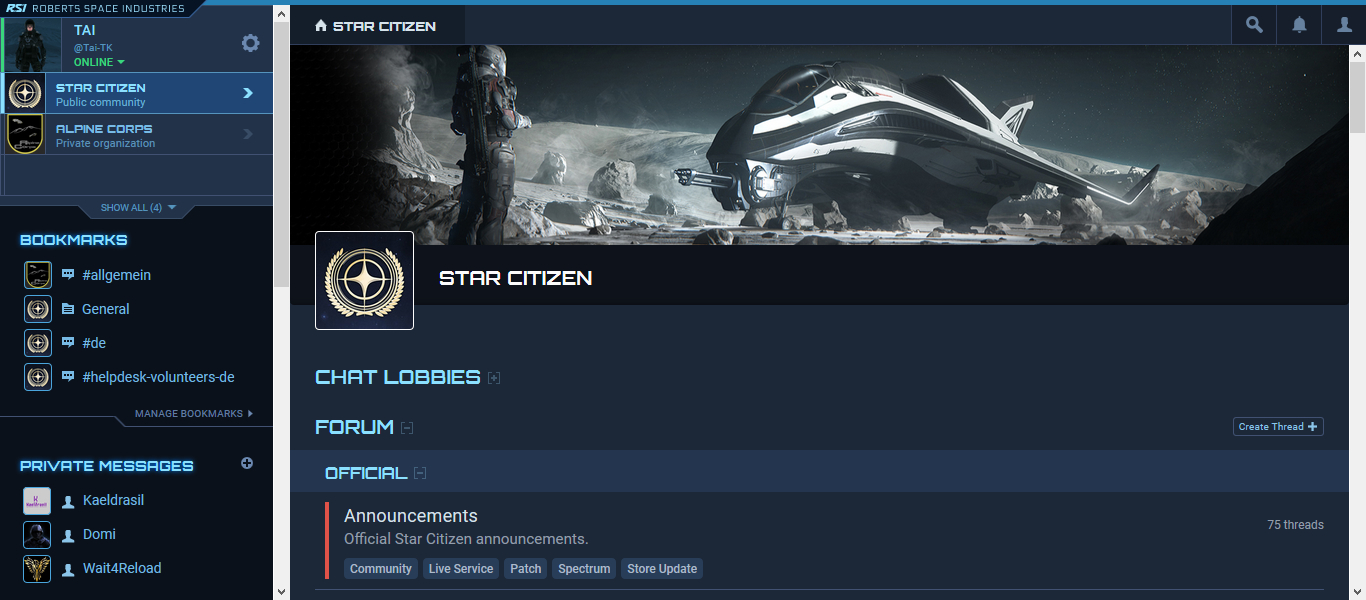 Die Reihenfolge der Foren könnt ihr per Drag und Drop anpassen. Dabei wird das oberste Forum immer als Spectrum Startseite genutzt, wenn ihr dieses über https://robertsspaceindustries.com/spectrum öffnet.