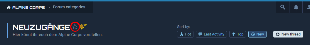Ihr könnt zu jeder Chat Lobby und zu jedem Unterforum ein Lesezeichen für die Sidebar setzen, indem ihr auf das Sternsymbol klickt:
