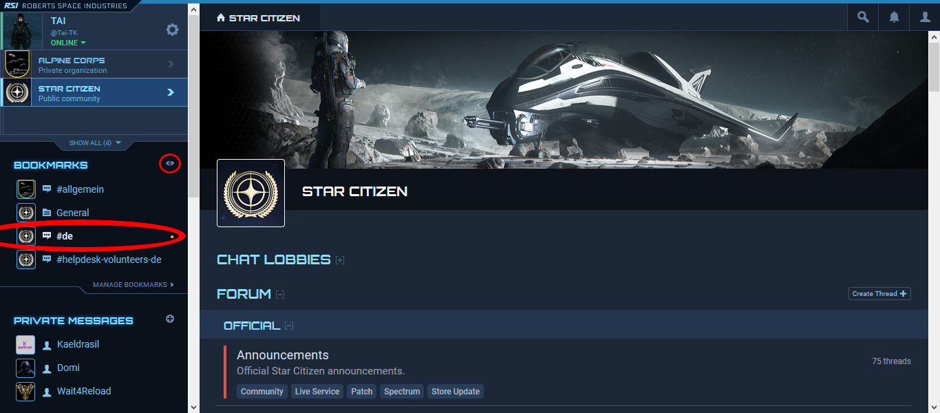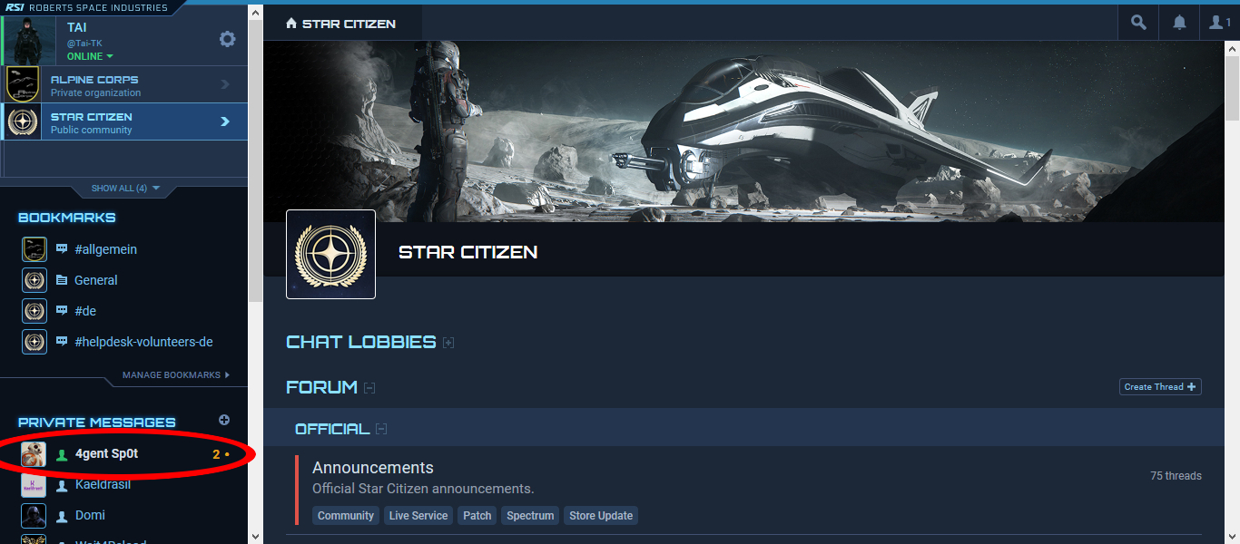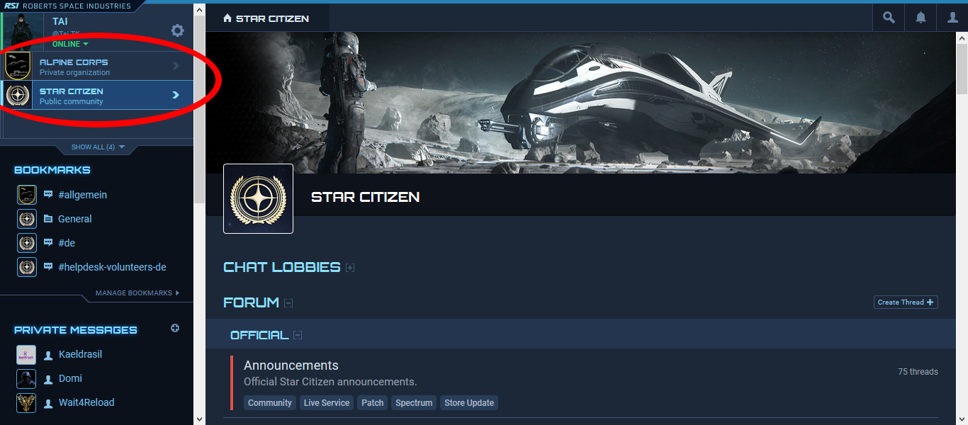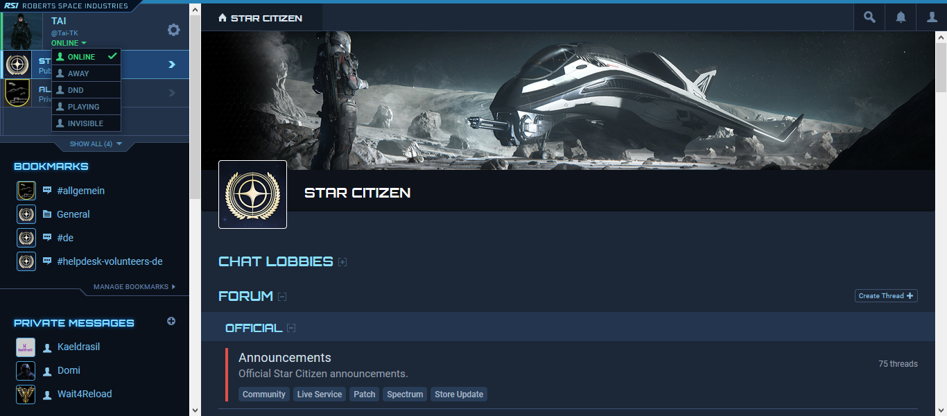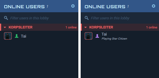 Solltet ihr über euren Browser oder über den RSI Launcher online sein und startet nebenbei das Spiel, wird euer Status automatisch gewechselt und es wird anderen angezeigt, was ihr gerade macht. Dasselbe gilt, wenn ihr das Spiel beendet.